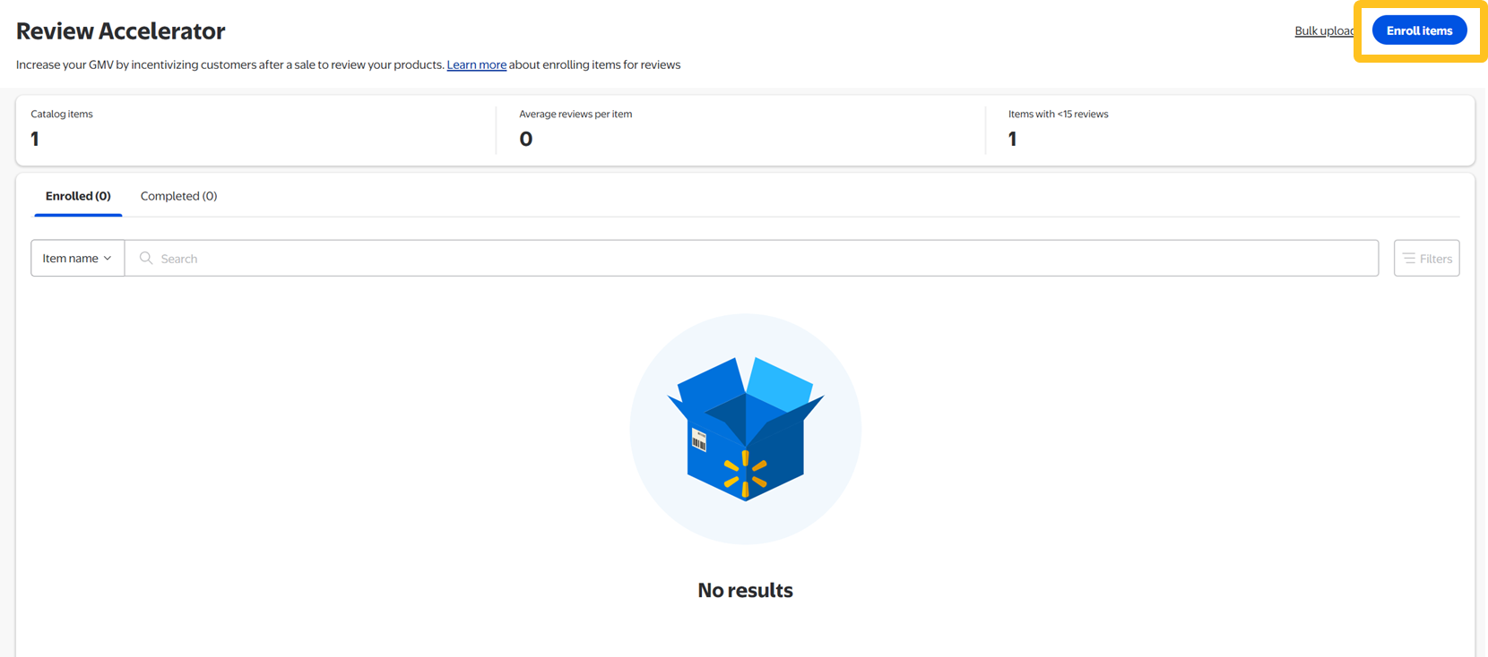 Review Accelerator encourages customers to share their feedback after purchasing an item on Walmart.com. When a customer purchases a product that is enrolled, they will be asked to write a true, accurate, and honest review in exchange for a digital reward that can be used toward their next purchase on Walmart.com.