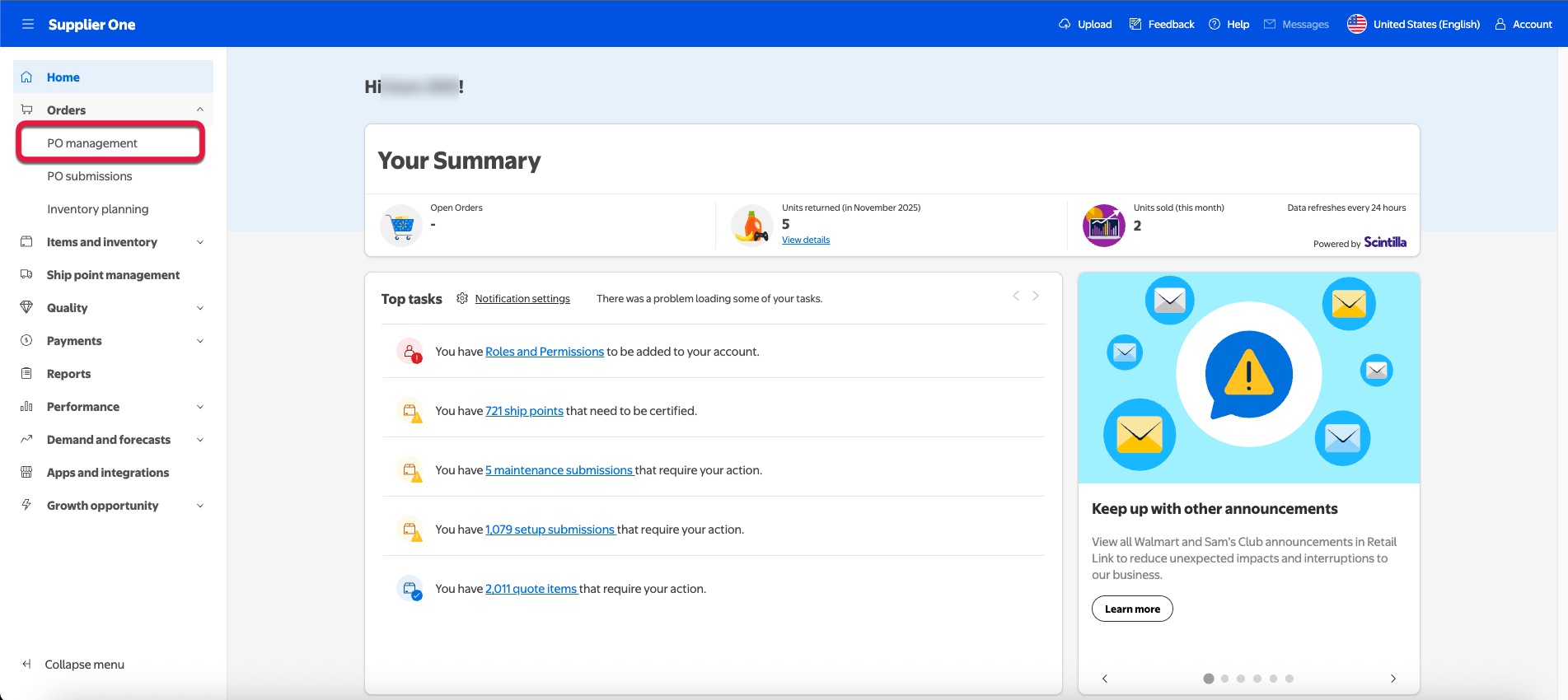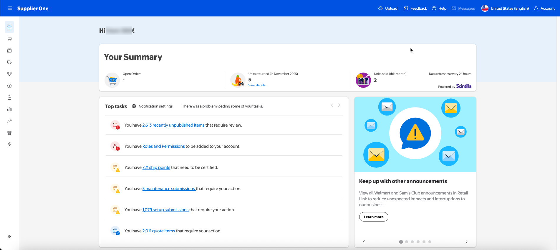 Sign into Retail Link. Select the Supplier One app to access the Supplier One dashboard.