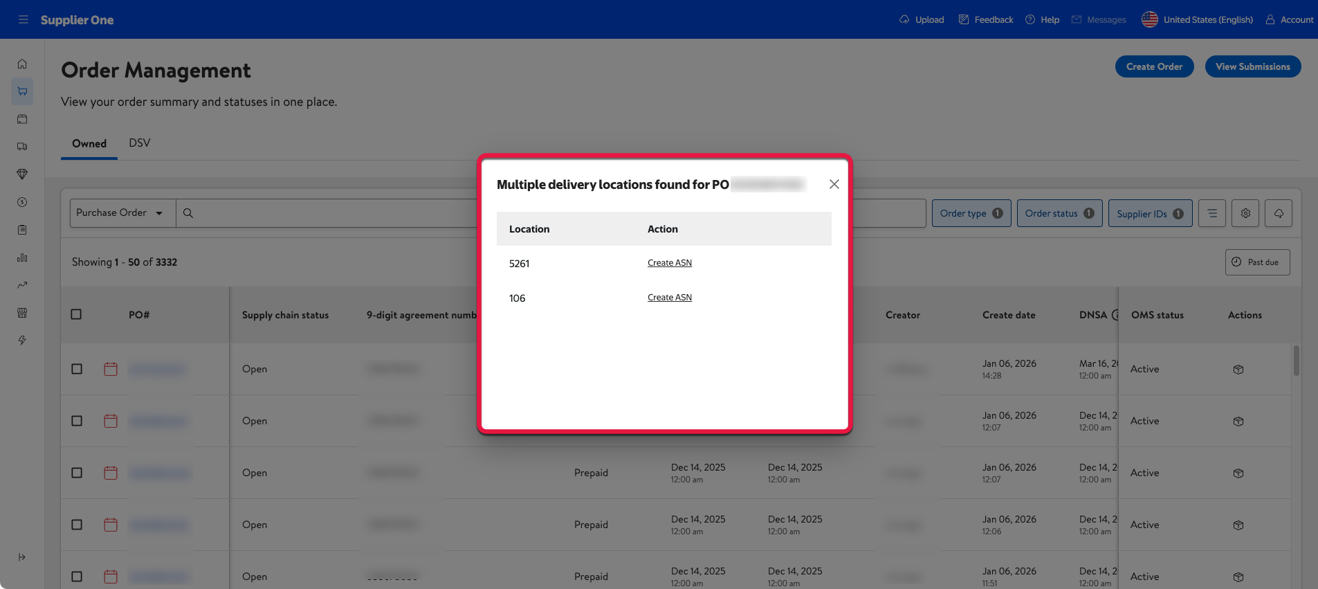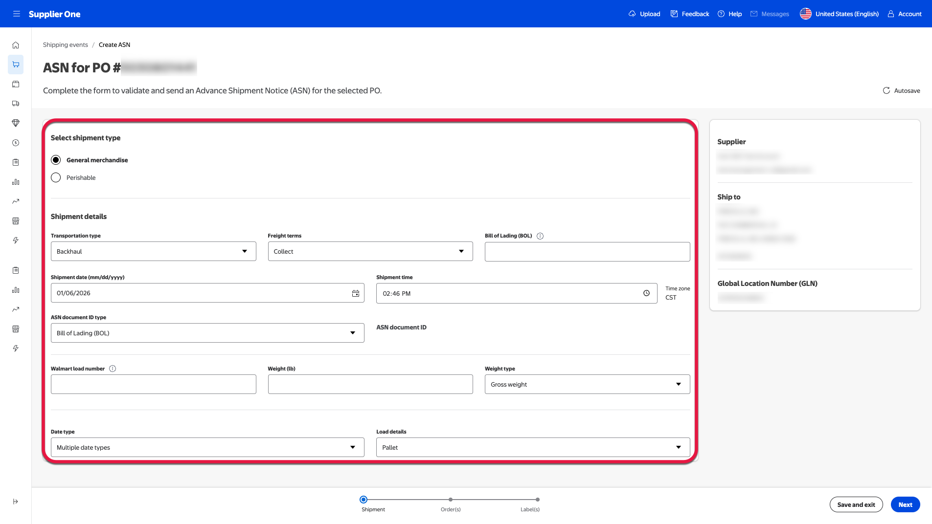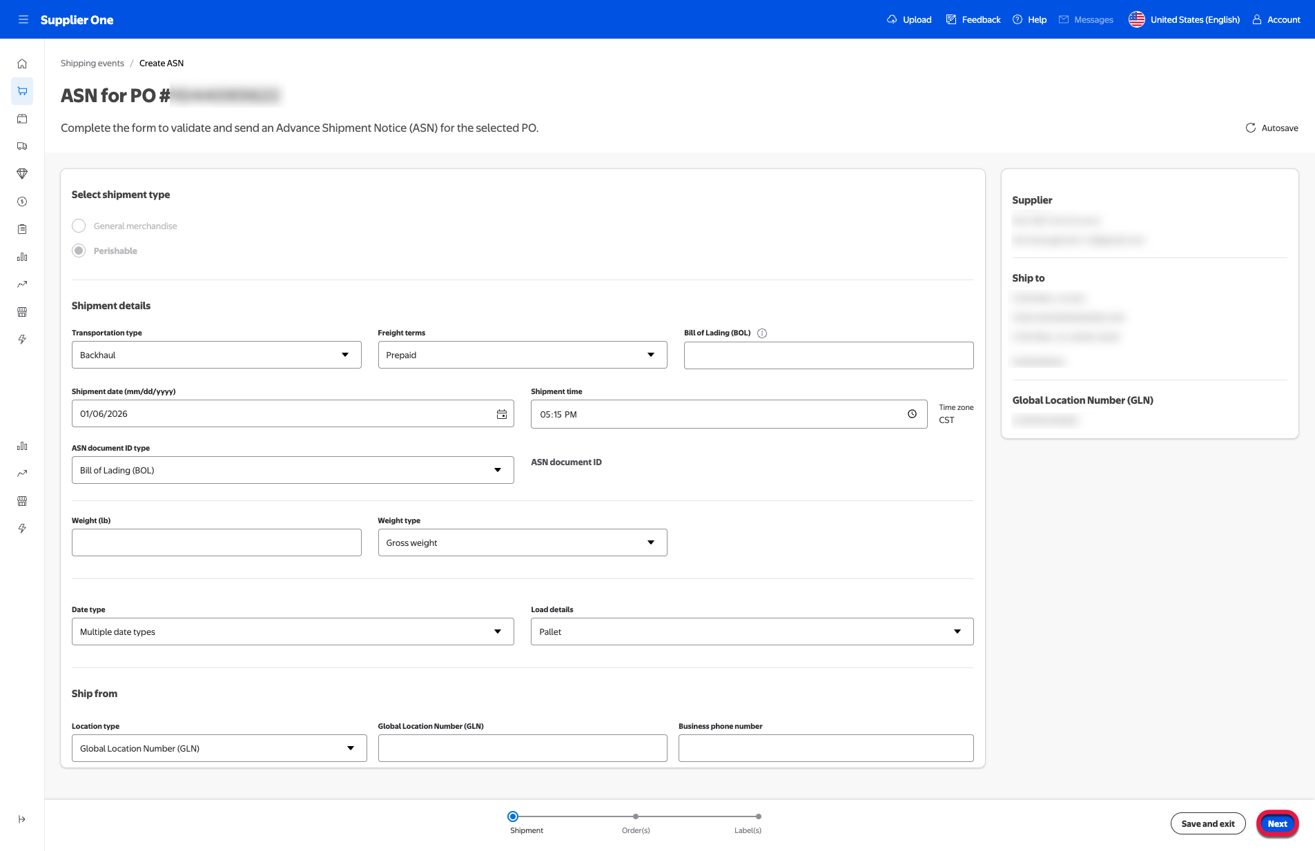 Creating an Advanced Shipping Notice (ASN) in Supplier One > Orders > PO management ensures accurate and timely communication of shipment information. This guide walks you through the ASN creation process with a focus on clarity, compliance, and operational efficiency. Each section is designed to be intuitive and task-focused, helping you to fill out your ASNs accurately and efficiently.