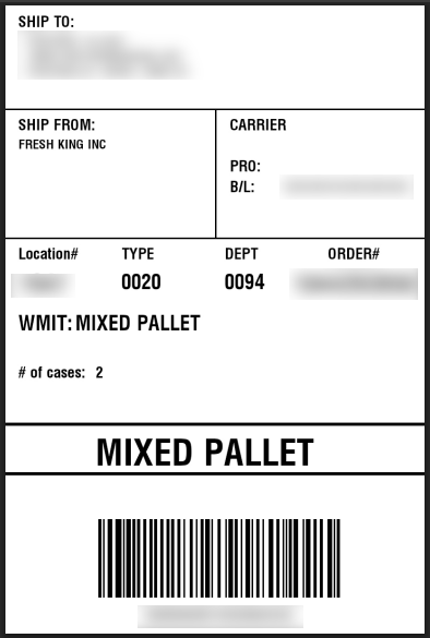 Here is an example of a downloaded label showing a mixed pallet with more than one ASN item.