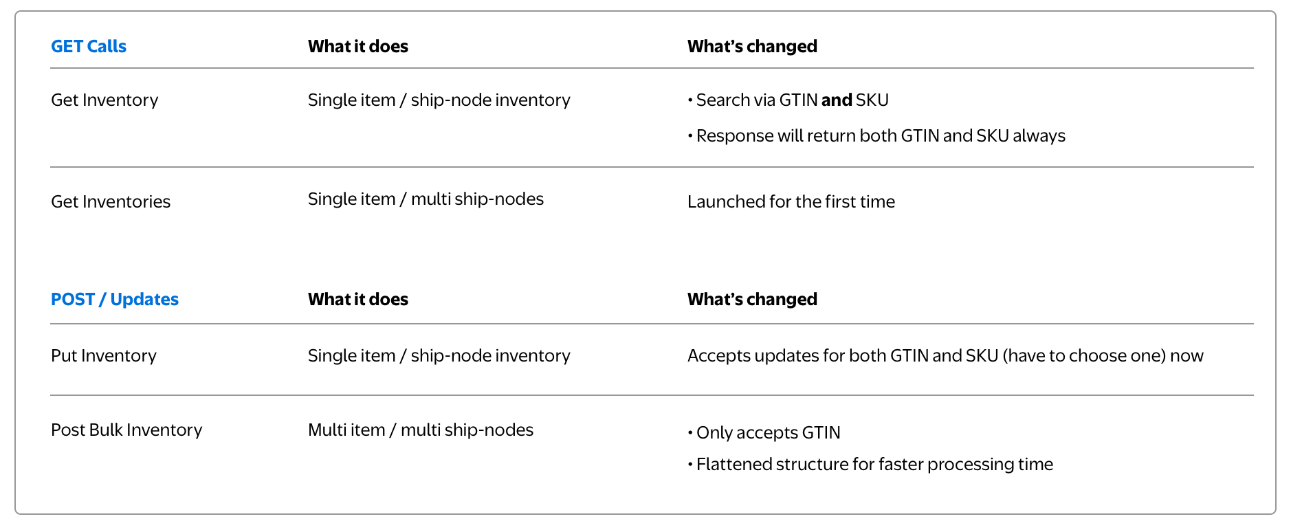 - SKU is no longer accepted as the item's primary identifier for inventory updates.