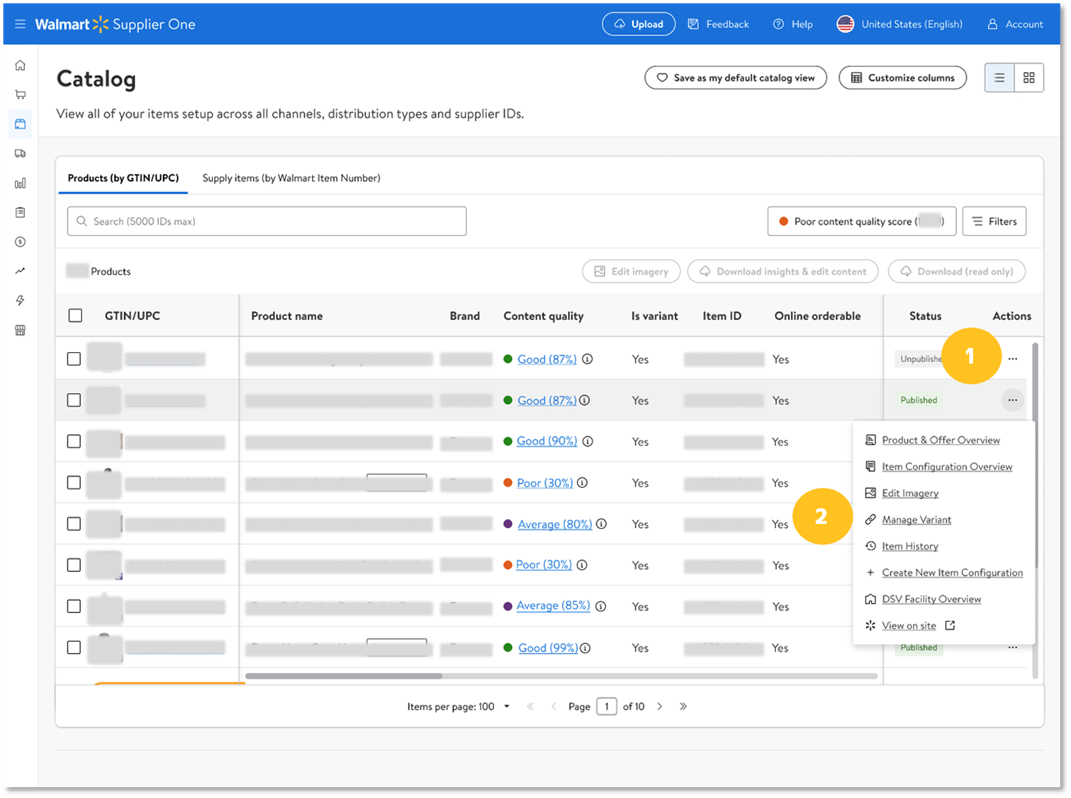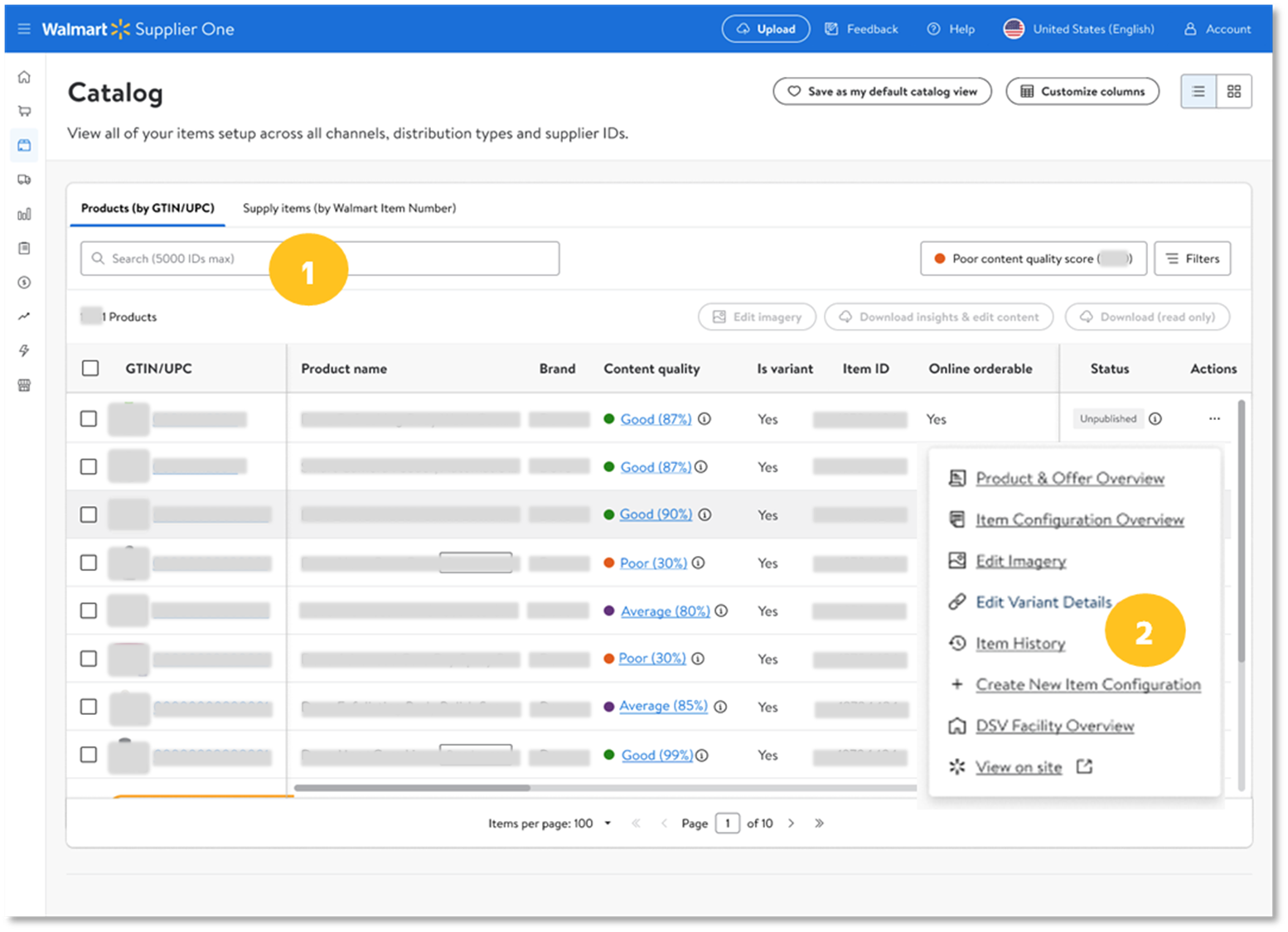 - In the Catalog view of Supplier One, search for an item in the variant group you wish to split.