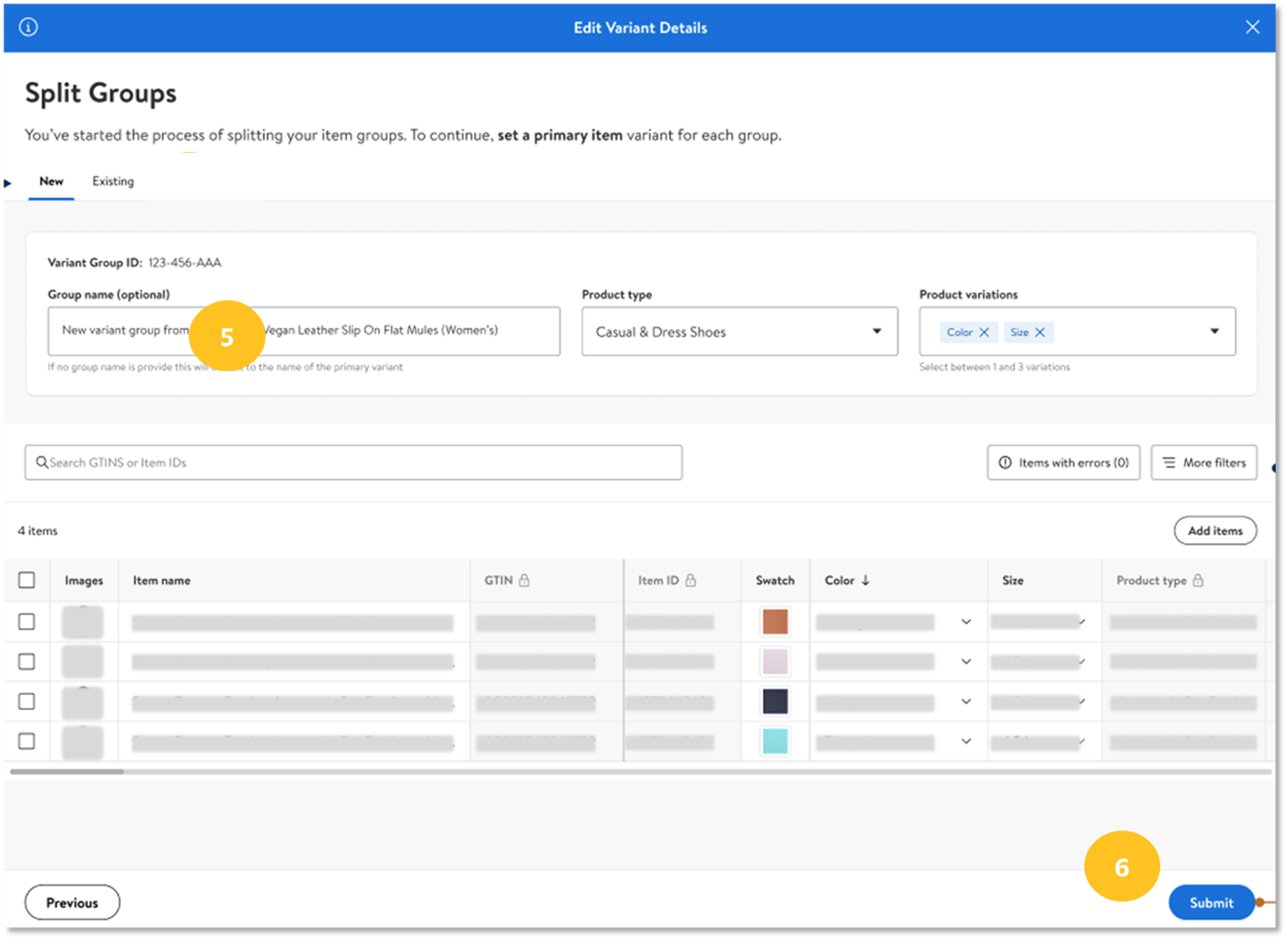 Follow the steps below to merge and split variant groups directly in Supplier One.