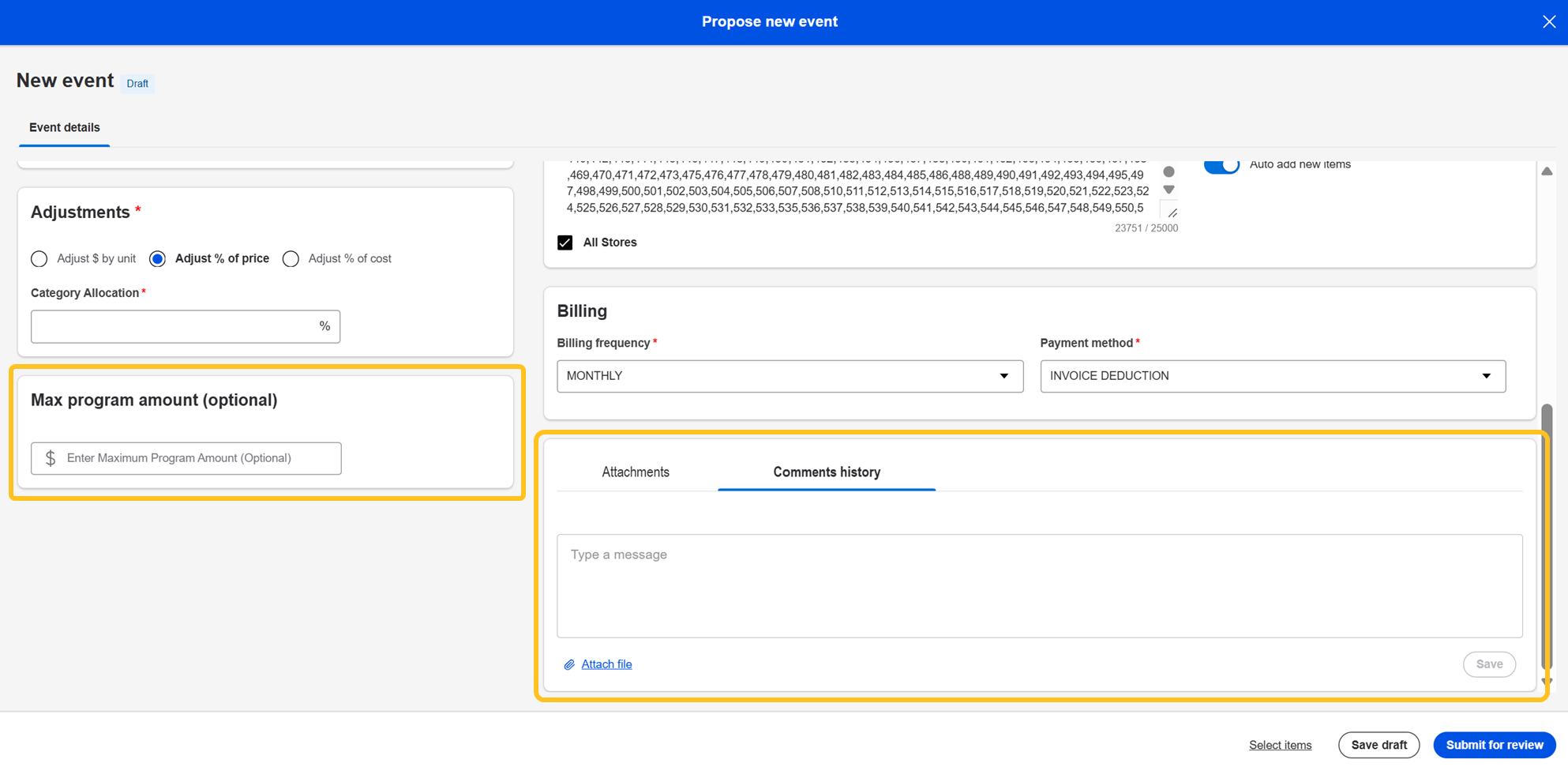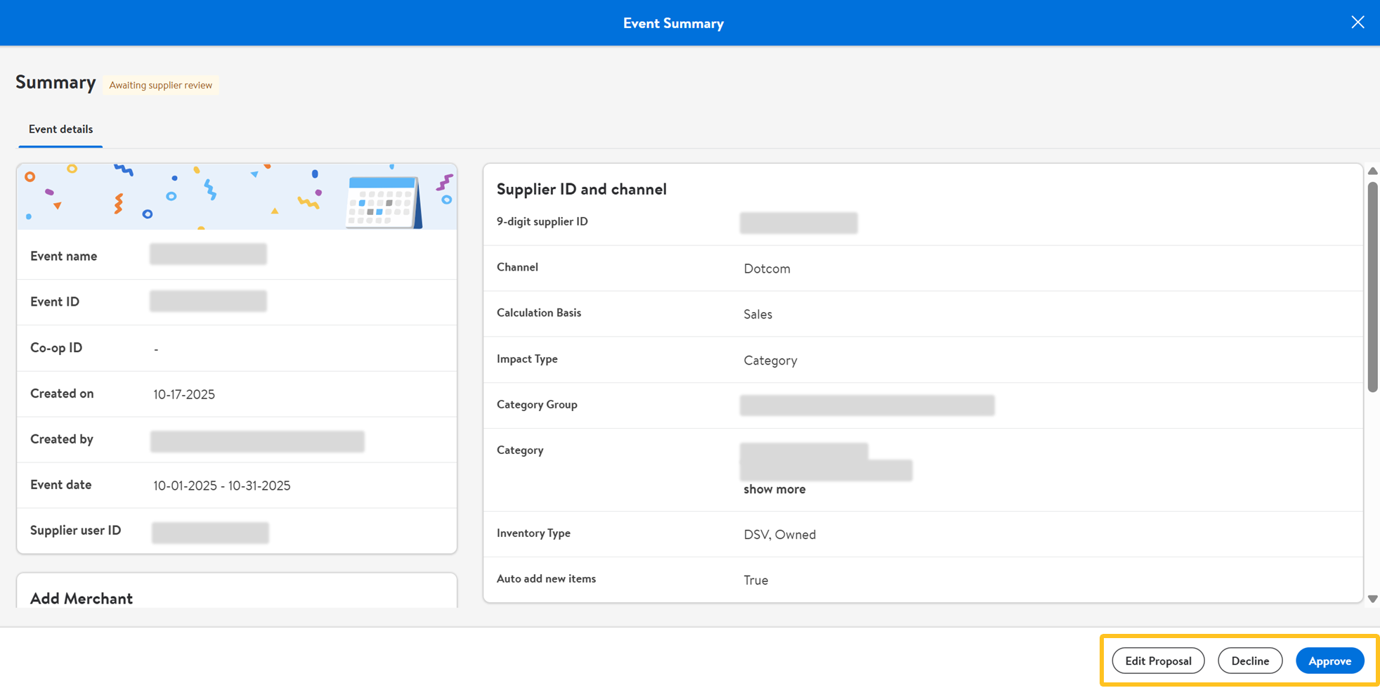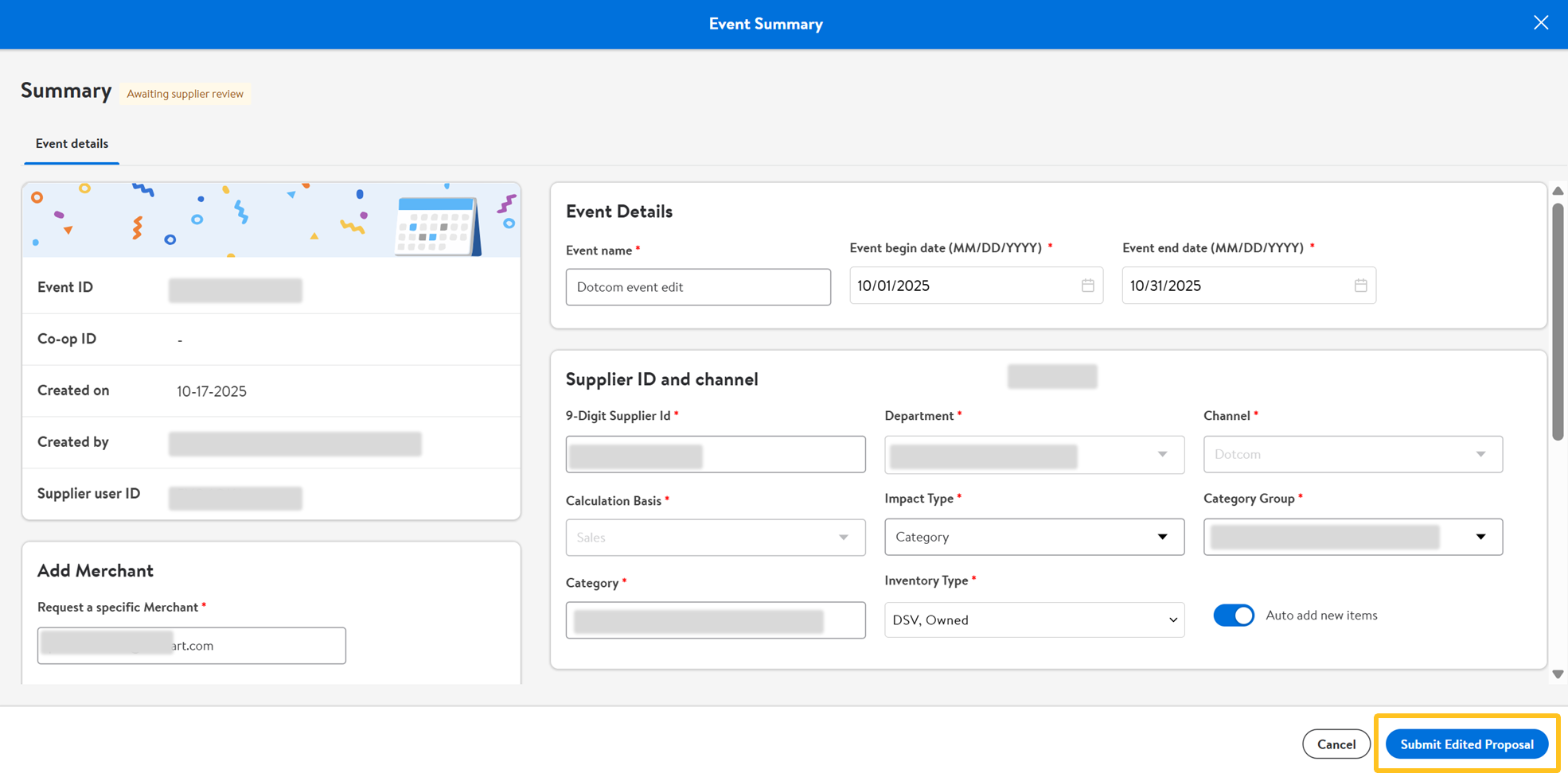 Suppliers now have the ability to create future and past-dated Events directly in Supplier One for Stores and Dotcom. Once approved by both the Merchant and the Supplier, the Event is assigned a Co-op ID. The Co-op start date is determined based on the Event start date, not the collection dates.