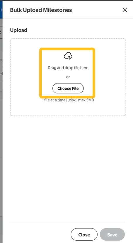 - The Bulk Upload Milestones allows you to upload multiple milestones at once (refer to the section below).