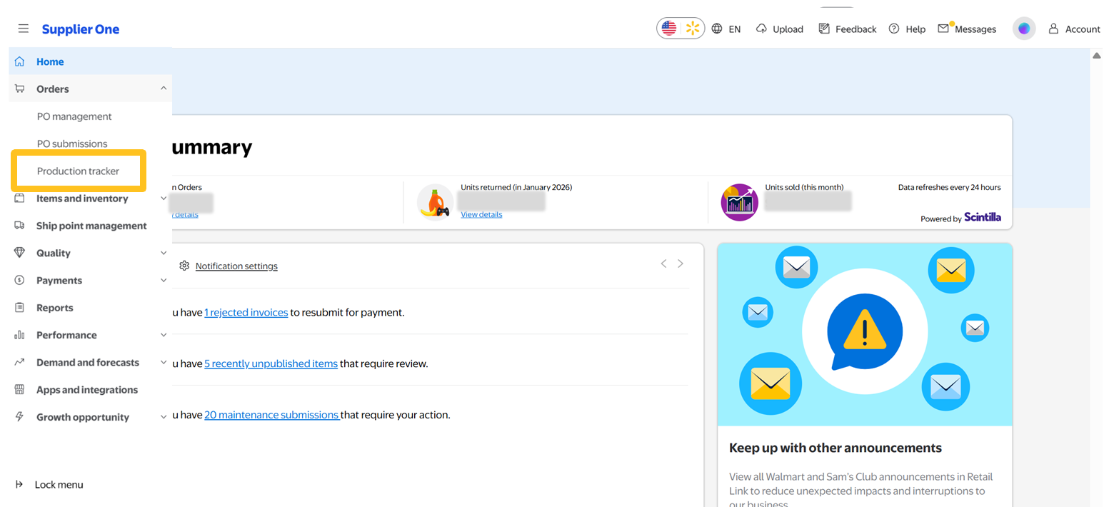 Follow the steps below to navigate and customize the Production Tracker page in Supplier One.