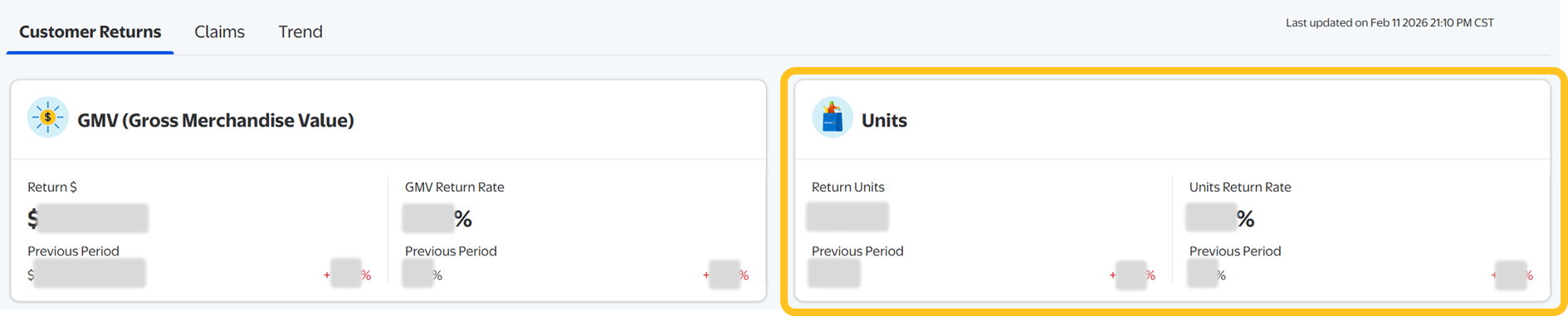 - Filter by units: The return rate is calculated as the number of return units initiated / the number of sales units shipped.