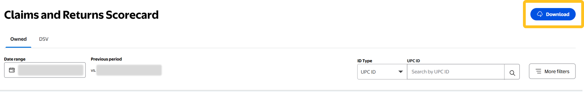 - For Owned: Click the Download button at the top of the page to download a .csv or .pdf file of the returns data shown.
