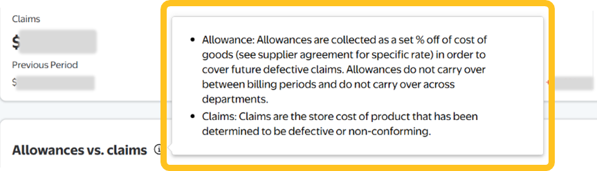 If you see an information icon next to a term (e.g., Allowances vs. claims), hover over it to learn more.