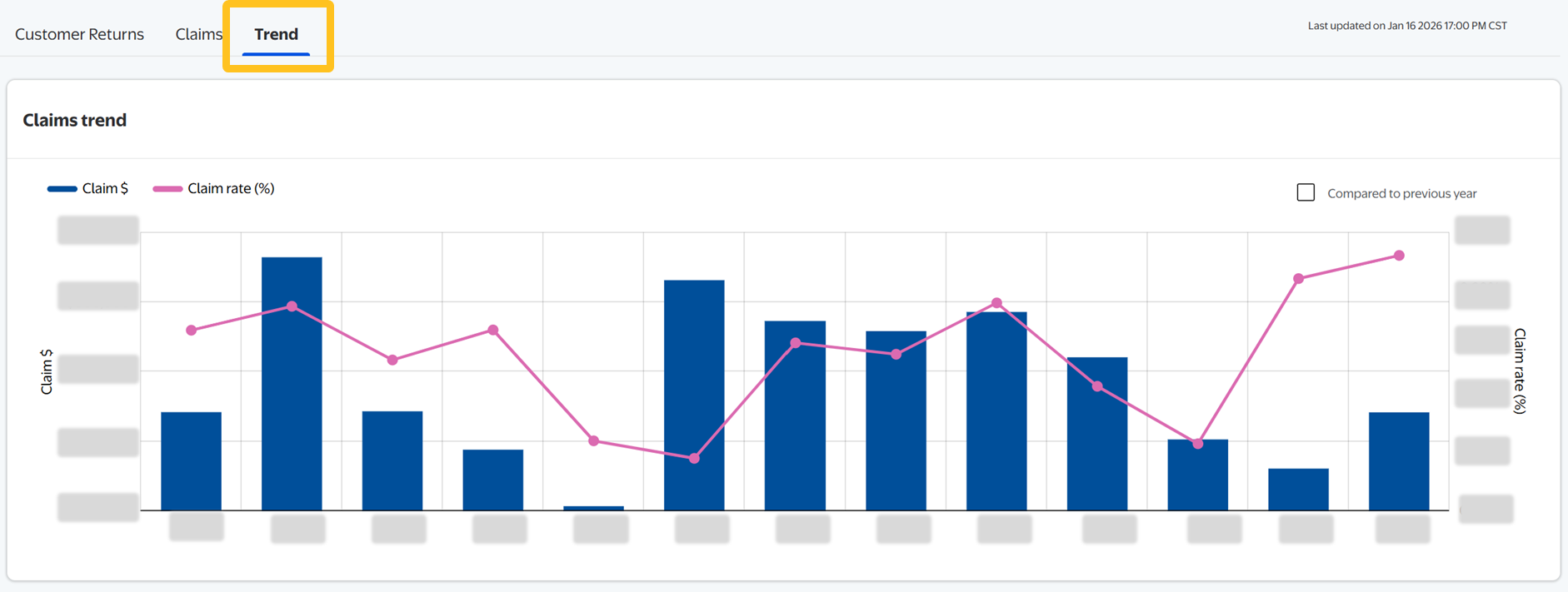 Click the Trend tab to gain insights into omnichannel claims (both Store and eCommerce), allowances, and Last 52 Weeks (L52W) data linked to your 9-digit Supplier ID.