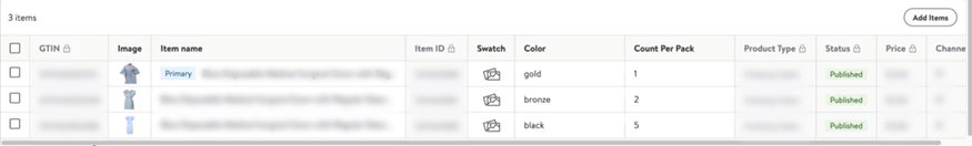 Si no envía todos los artículos del grupo a Walmart, trabaje con su comerciante para editar los atributos de la variante.