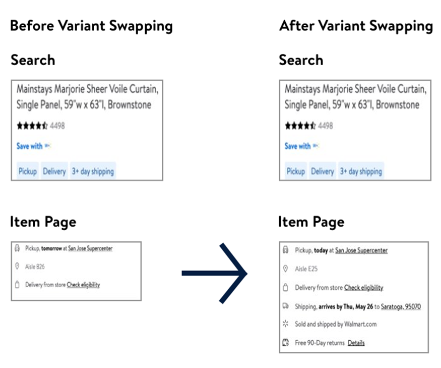 Hemos mejorado la experiencia para que las opciones de cumplimiento sean consistentes desde la búsqueda hasta la página del artículo.Esta mejora se conoce como intercambio de variantes.
