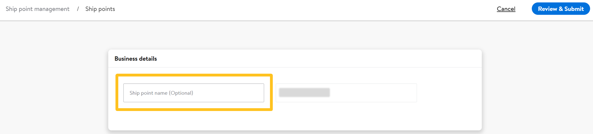 The ship point name is optional, but strongly recommended. Using a descriptive name helps other users (within your organization and at Walmart) identify the ship point in future discussions.