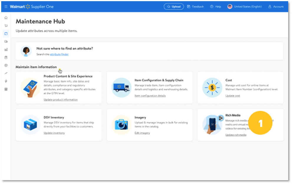Step 1: In the Maintenance Hub of Supplier One select the Rich Media tile.