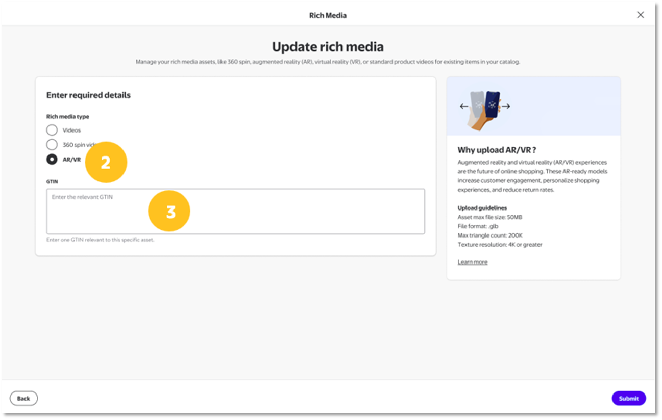 Beginning on 10/15/2025, Suppliers will have the ability to upload 3D assets to items one at a time in Supplier One. Suppliers will no longer need to work with their Walmart merchants to perform these actions.