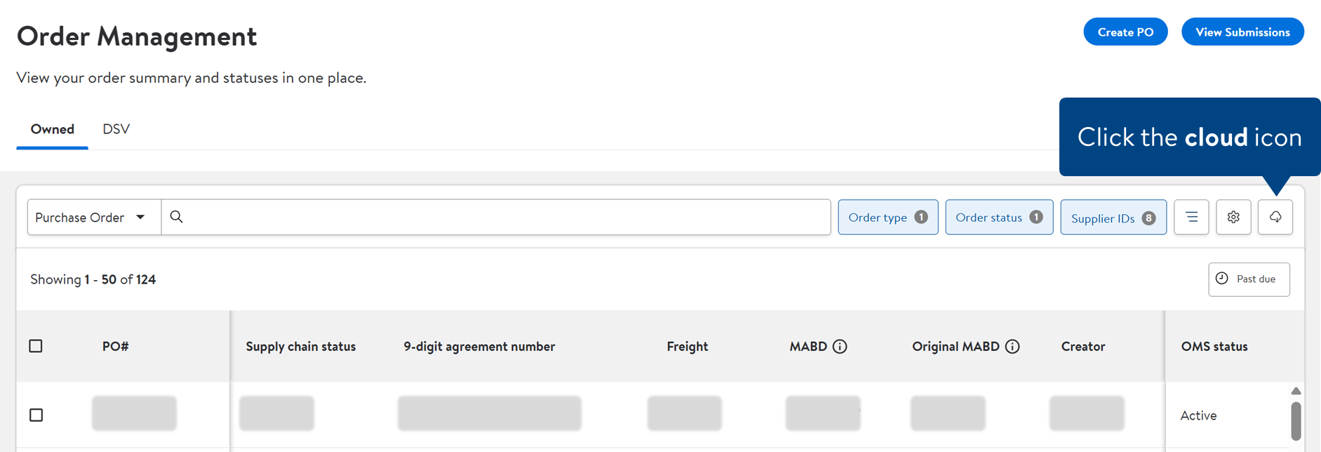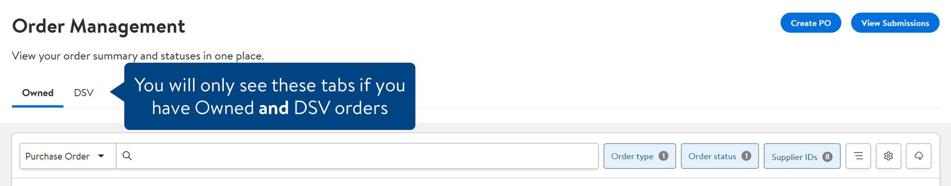 If you have both Owned and DSV orders, you will see two tabs. Click the Owned tab to view data for all Owned orders linked to your account.