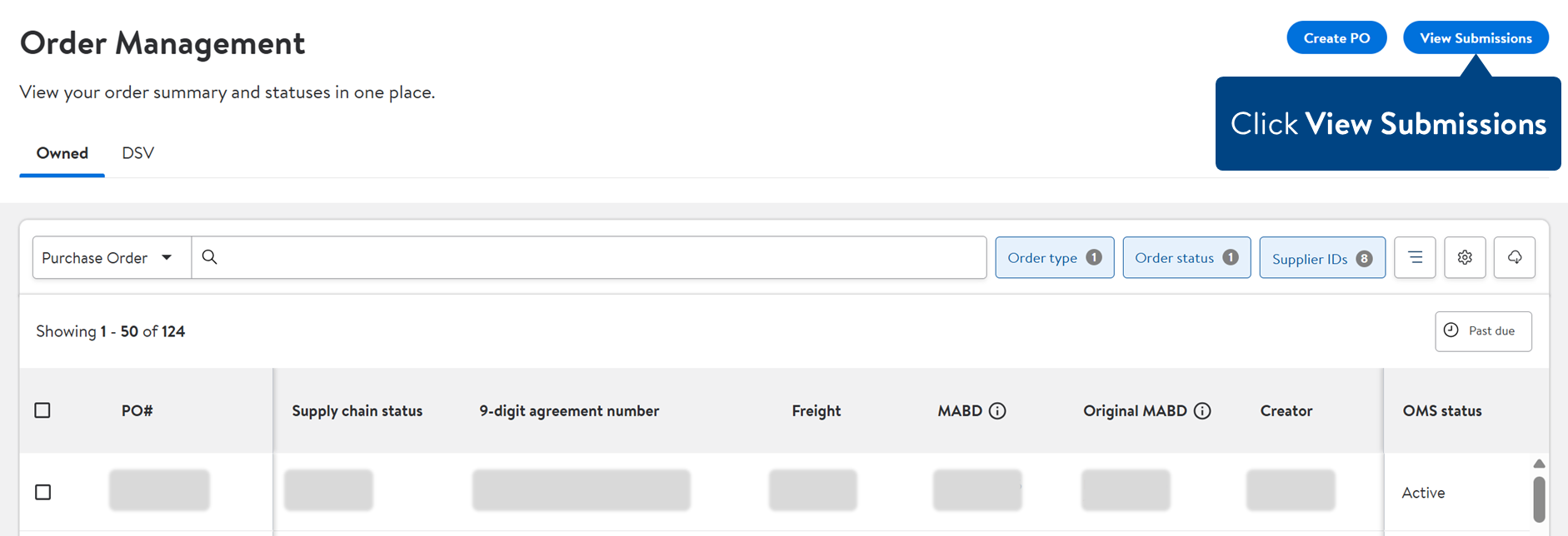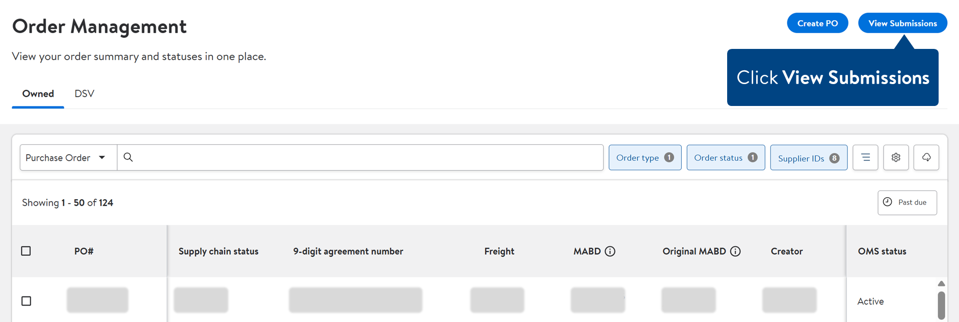 To track the status of your submission, click View Submissions on the Order Management page in Supplier One.