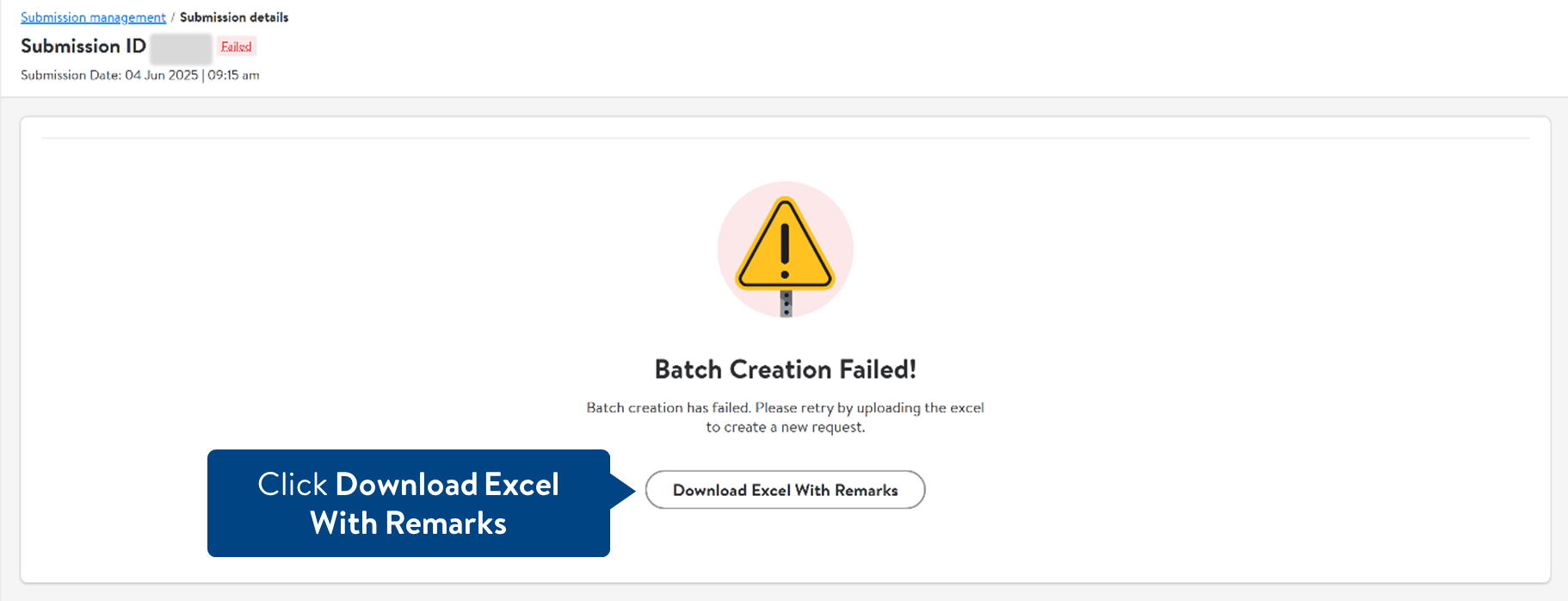 Validation failed. Please download the error file, correct the issues and resubmit.