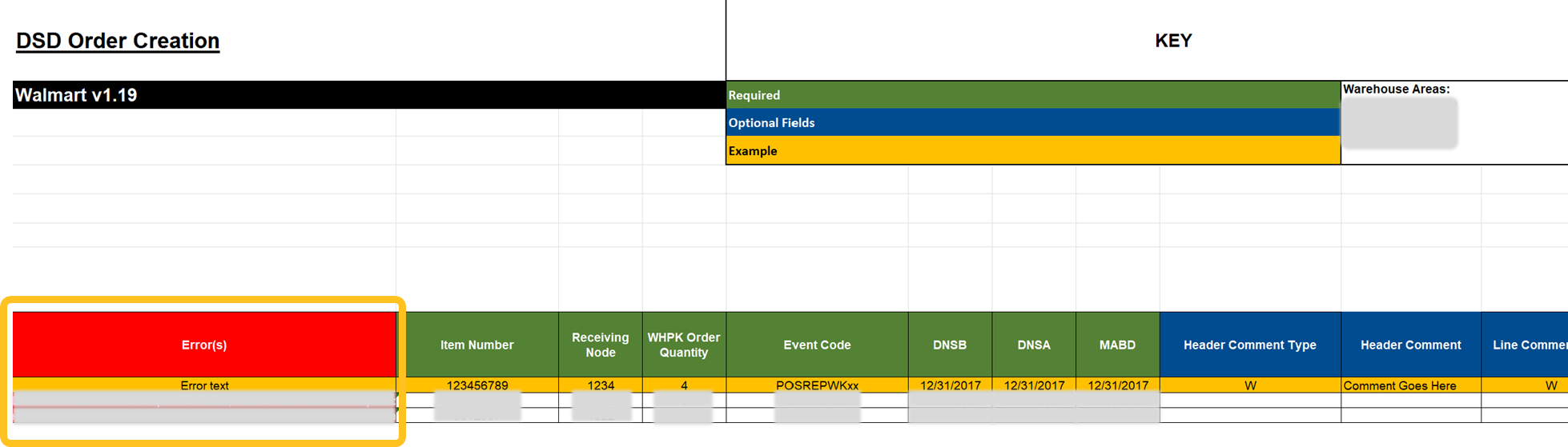 Invalid distribution location entered. In the original file, provide the correct distribution location, save and follow PO creation process.