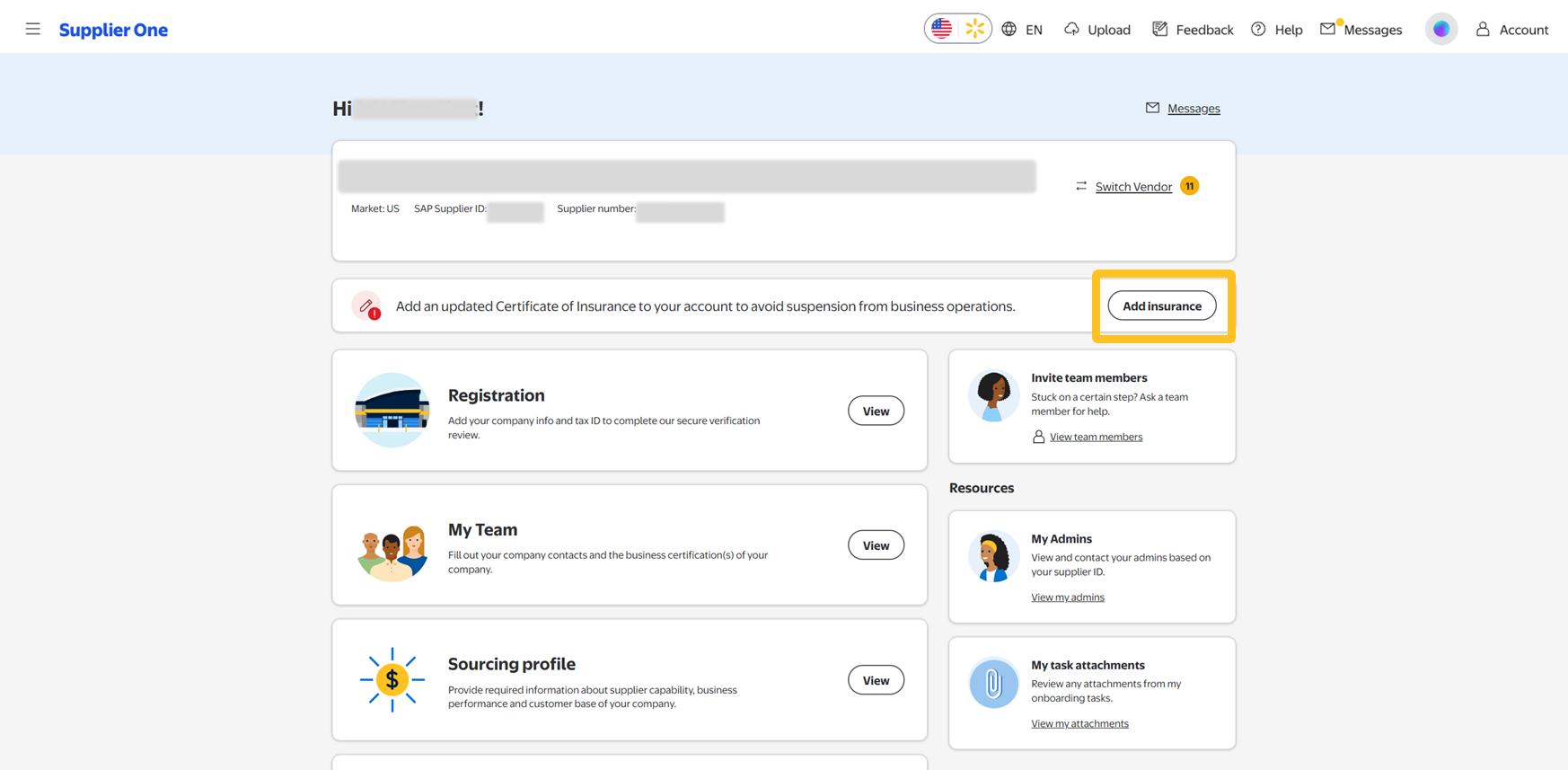If you have more than one 6-digit supplier ID, you can switch between the IDs. You will have to add insurance for each.