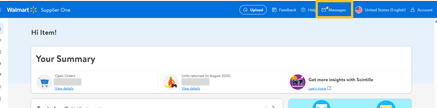 - Navigate to Collab by selecting Messages in the top right corner of Supplier One.